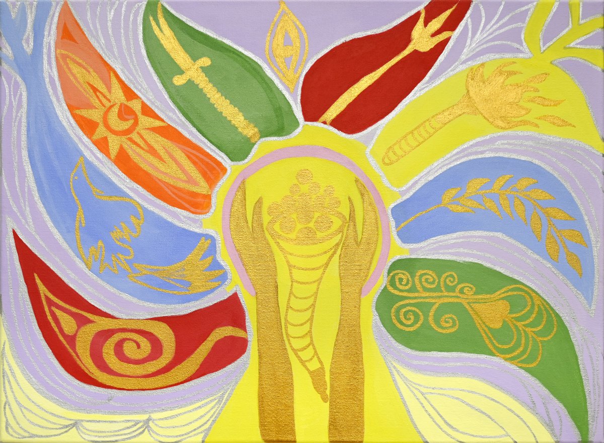 The flame or torch represents enlightenment and transformation. It is a symbol of awakening, both personal and collective, a beacon of divine guidance, inner light, and the power of knowledge to dispel darkness. It evokes the inner fire that propels progress and uplifts consciousness.